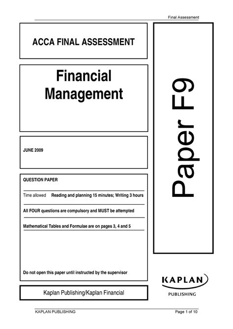 Read Acca Final Assessment Questions Reader